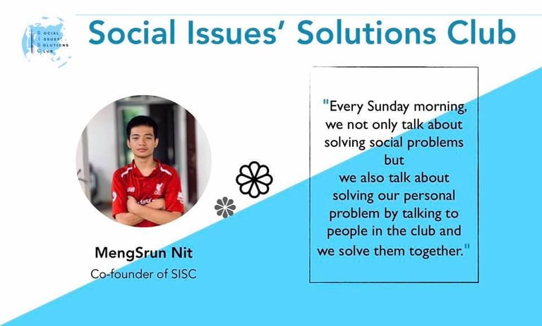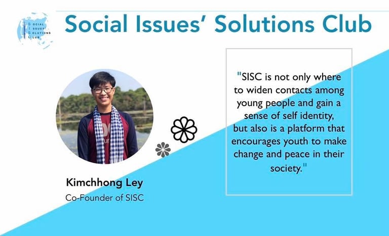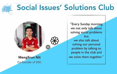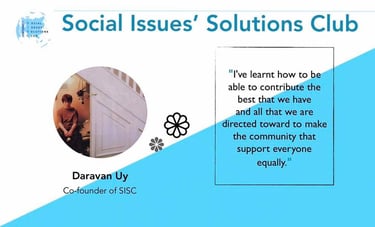Chouly is currently pursuing a bachelor's of Contemporary International Studies at IPU New Zealand. Growing up in Banteay Meanchey province, there were not many opportunities to make an impact in her communities, so with a burning passion for social issues, Chouly founded Social Issues' Solutions Club at 14 years old to create a collaborative space for high school student around the city to come together and help solve the problem in the community. With support from the cofounders and the community, her passion project became a reality and has shaped the view of youth and social impact contribution in her community.