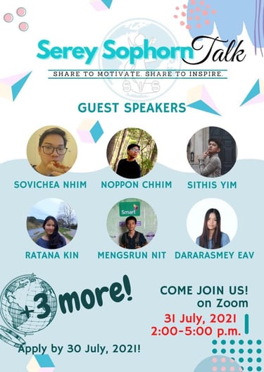 In partnership with Serey Sophon English Center, we brought forth Serey Sophorn Talk in 2017 with the purpose to create a space for people from Serey Sophorn City who have achieved something significant for themselves to share their experiences to inspire and motivate their juniors. It has become a tradition for SISC to organize the talk every year and now with a wider range of audience and guest speakers.
