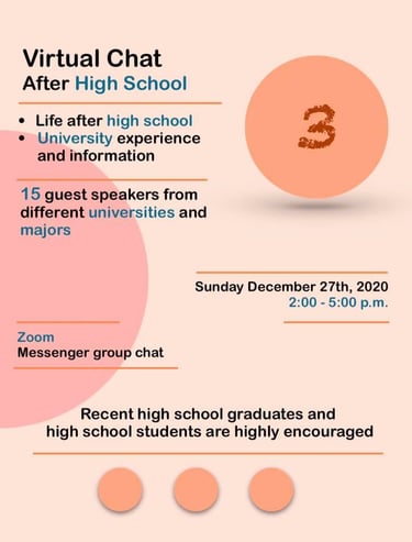 This time, we’re back with another Virtual Chat < After High School> to catch up with the juniors which our honored guest speakers will go into details about: